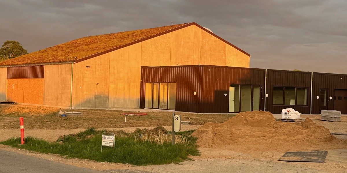 Mod nord er der pålagt sedumtag og mod syd er monteret solcellen, så vi også kan være med p...
